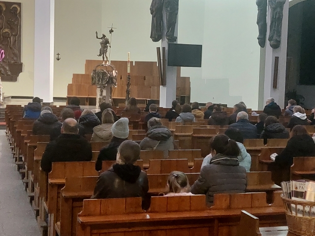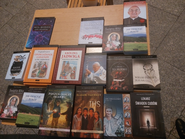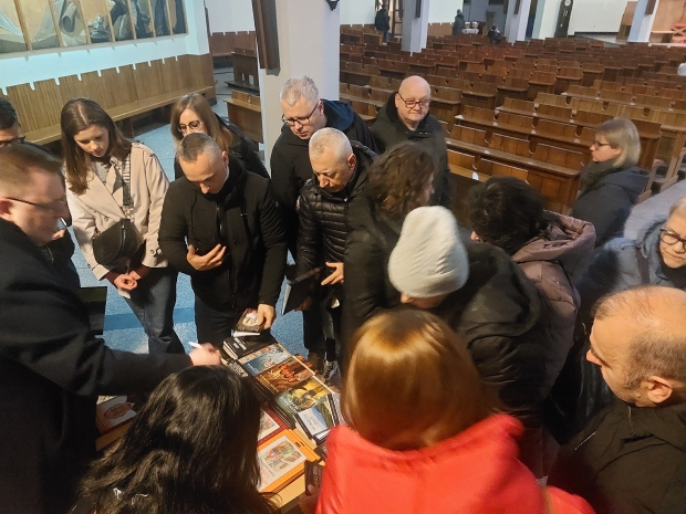 W piątek 27 marca 2026 roku przedstawiciele Wydawnictwa PETRUS zjawili się w Bochni, w parafii św. Pawła Apostoła. Nie było to nasze pierwsze spotkanie z tą prężną wspólnotą parafialną; gościliśmy tu bowiem 10 lat temu, a relację z tego wydarzenia można obejrzeć tutaj. Tym razem jednak było zupełnie wielkopostnie. Przez cały dzień modliliśmy się tekstami Marka Mirosławskiego zawartymi w książce „Jak osiągnąć pokój?”, a po części liturgicznej zapraszaliśmy parafian do naszego stoiska, na którym czekała literatura pobudzająca do refleksji i chrześcijańskiej medytacji: „Sekrety modlitwy”, „Archaniołowie blisko nas”, modlitewnik do św. Rity, a dla dzieci m.in. „Najpiękniejsze opowiadania i legendy o św. Jadwidze” czy „Królowa Jadwiga. Marzenia i rozterki”. Niemałym zainteresowaniem cieszyły się, przeznaczone również dla najmłodszych czytelników, pozycje autorstwa ks. Andrzeja Klimary: „Poszukiwacze skarbu” oraz „Śladami tajemnicy IHS”.