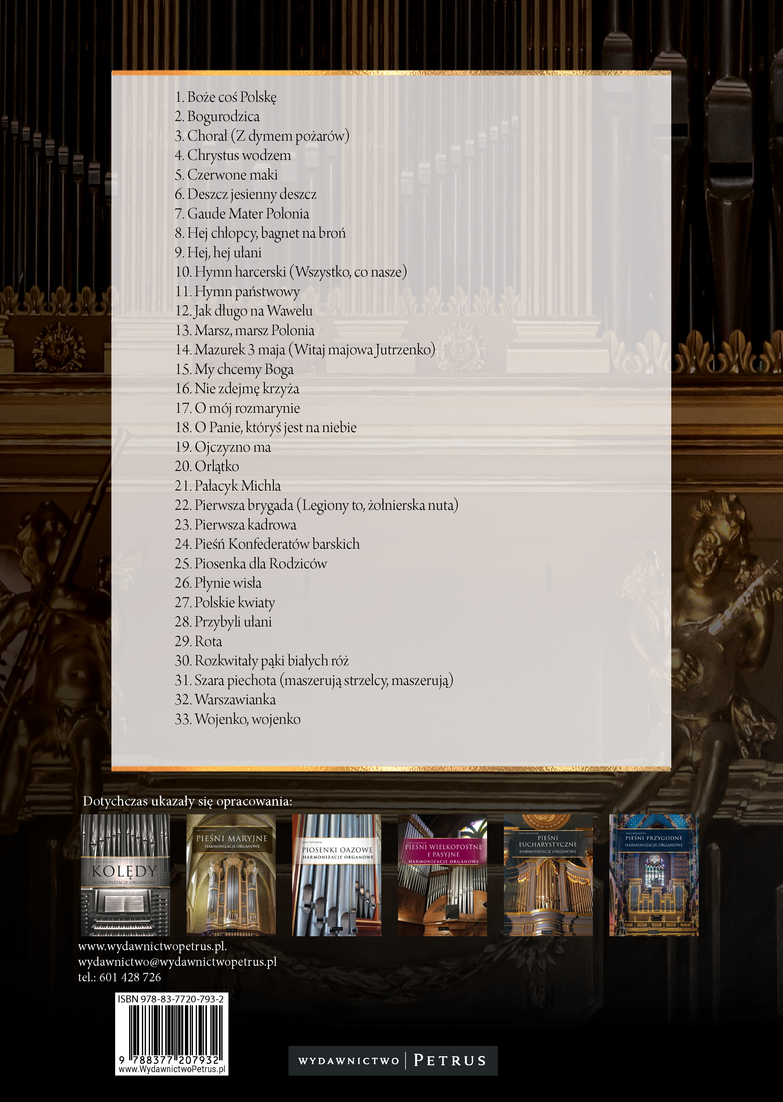 Pieśni patriotyczne. Harmonizacje organowe to wyjątkowa publikacja, która łączy w sobie miłość do naszej narodowej tradycji muzycznej z kunsztem organowej interpretacji dr. Pawła Piotrowskiego. Fenomen tej publikacji polega na unikatowym podejściu do znanych pieśni patriotycznych, które zyskały nowy, dostojny wymiar dzięki starannie opracowanym harmonizacjom organowym.