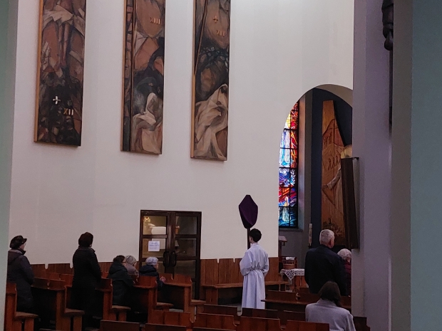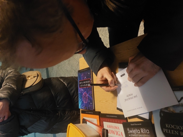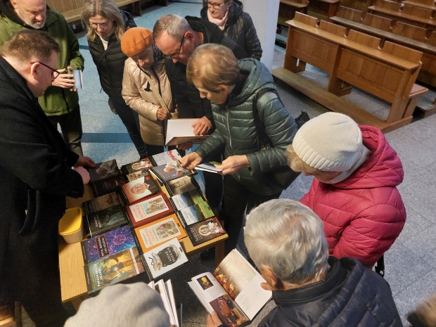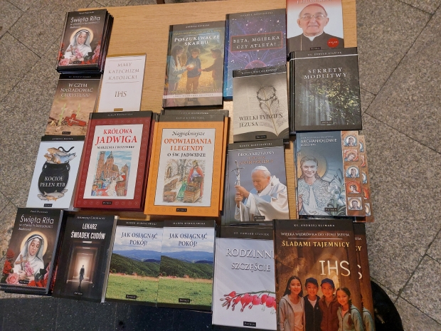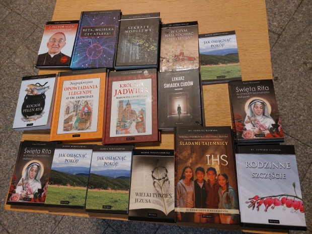 W piątek 27 marca 2026 roku przedstawiciele Wydawnictwa PETRUS zjawili się w Bochni, w parafii św. Pawła Apostoła. Nie było to nasze pierwsze spotkanie z tą prężną wspólnotą parafialną; gościliśmy tu bowiem 10 lat temu, a relację z tego wydarzenia można obejrzeć tutaj. Tym razem jednak było zupełnie wielkopostnie. Przez cały dzień modliliśmy się tekstami Marka Mirosławskiego zawartymi w książce „Jak osiągnąć pokój?”, a po części liturgicznej zapraszaliśmy parafian do naszego stoiska, na którym czekała literatura pobudzająca do refleksji i chrześcijańskiej medytacji: „Sekrety modlitwy”, „Archaniołowie blisko nas”, modlitewnik do św. Rity, a dla dzieci m.in. „Najpiękniejsze opowiadania i legendy o św. Jadwidze” czy „Królowa Jadwiga. Marzenia i rozterki”. Niemałym zainteresowaniem cieszyły się, przeznaczone również dla najmłodszych czytelników, pozycje autorstwa ks. Andrzeja Klimary: „Poszukiwacze skarbu” oraz „Śladami tajemnicy IHS”.