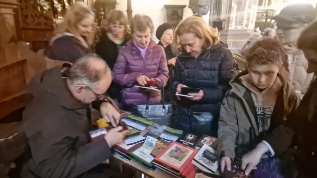 W trakcie wizyty nieśliśmy posłanie o pokoju zawarte w książce Marka Mirosławskiego „Jak osiągnąć pokój?”. Dużym zainteresowaniem olkuskich wiernych cieszył się również nasz najnowszy modlitewnik do św. Rity. Młodzi sięgali po bajki, w tym szczególnie „Moje przedszkole” autorstwa Elżbiety Bielak. Uzyskaliśmy zapewnienie, że Olkusz jest zawsze dla nas otwarty. Dziękujemy Księdzu Proboszczowi i parafianom za tak ciepłe przyjęcie!